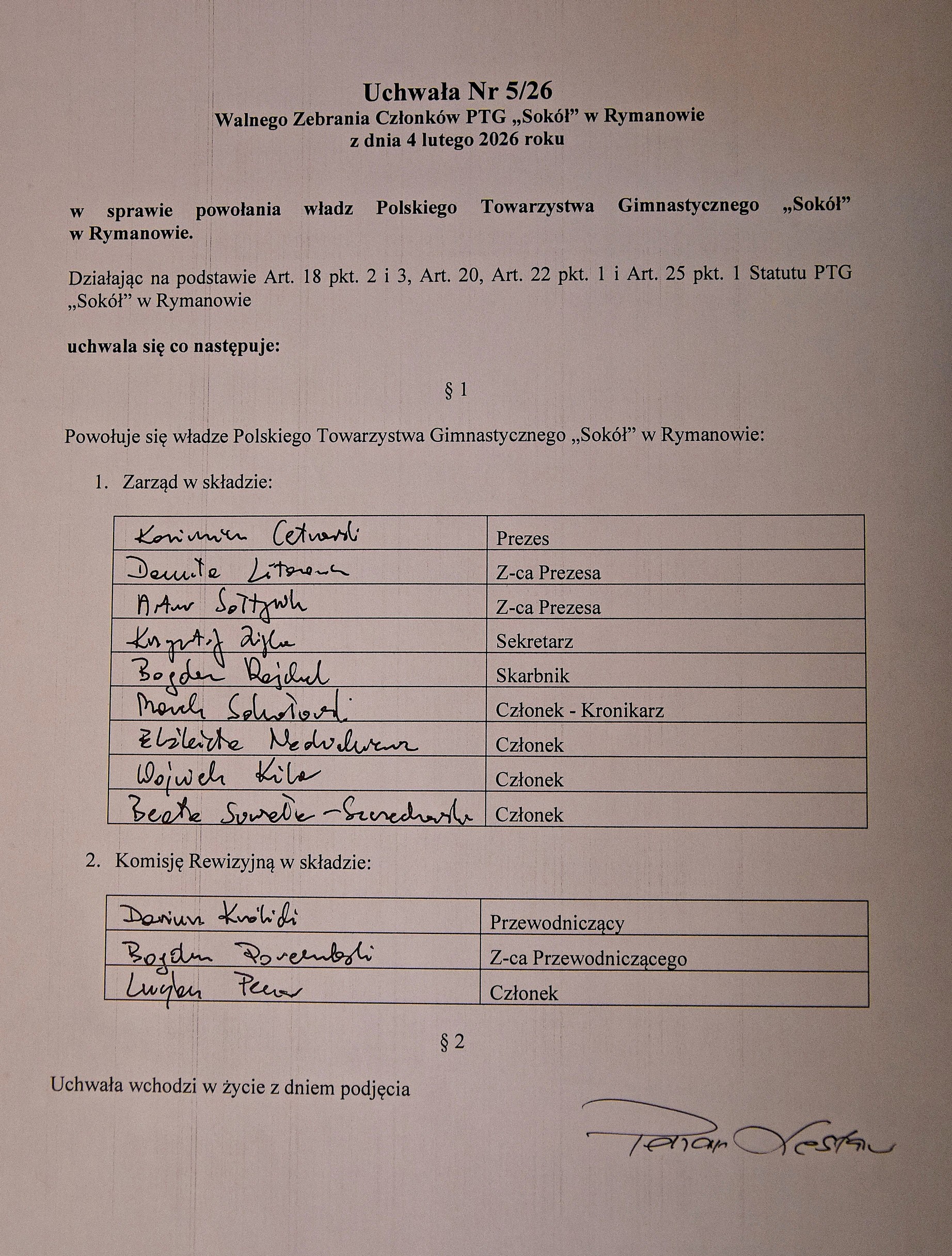- zatwierdzenie sprawozdania z działalności Zarządu PTG „Sokół” w Rymanowie za 2025 rok
